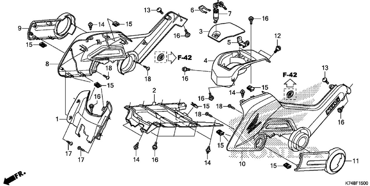 1. 64410-K74-N00 COBERTOR FRONTAL CENTRAL DE TANQUE