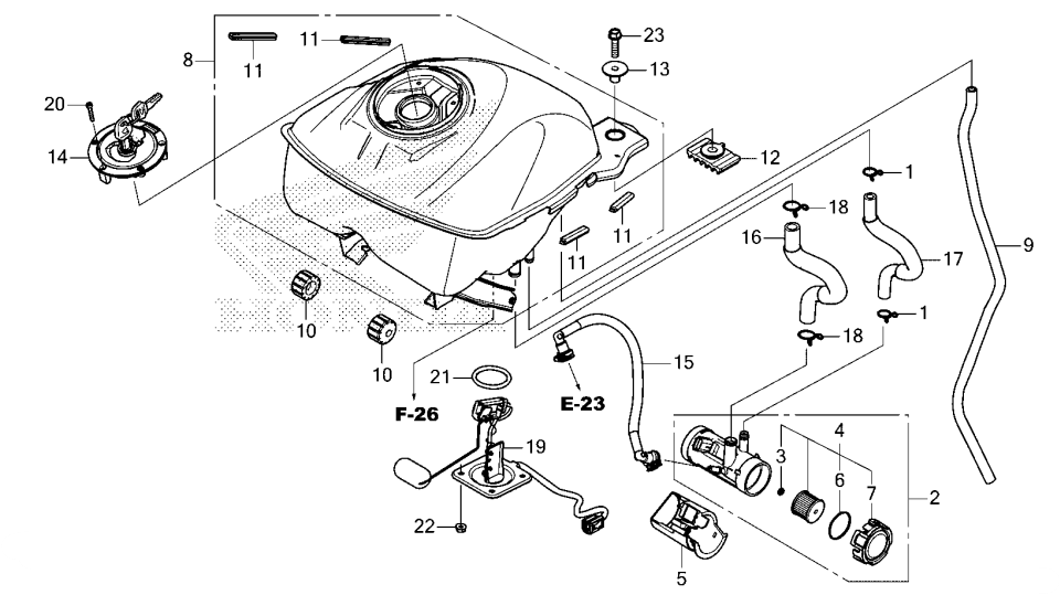 14. 17620-K2K-D01 LLAVE TANQUE DE CONBUSTIBLE