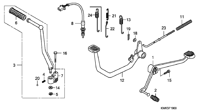 1. 24710-KRF-S00 PEDAL DE CAMBIOS