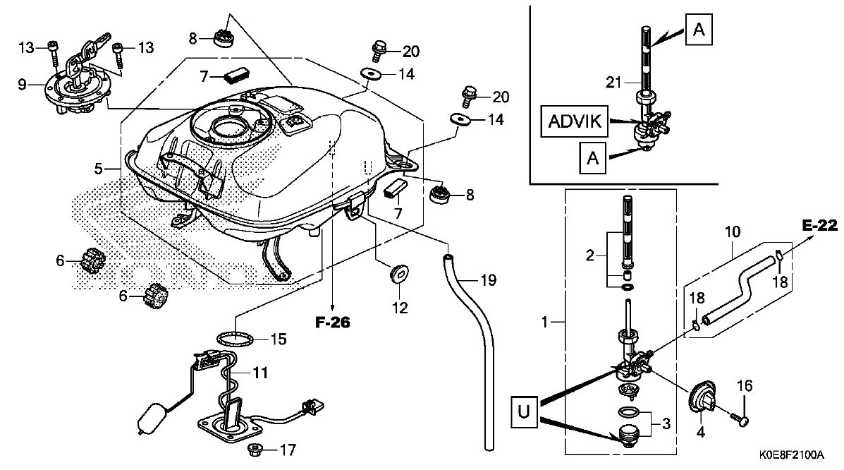 1. 16950-K0E-D01 LLAVE DE GASOLINA