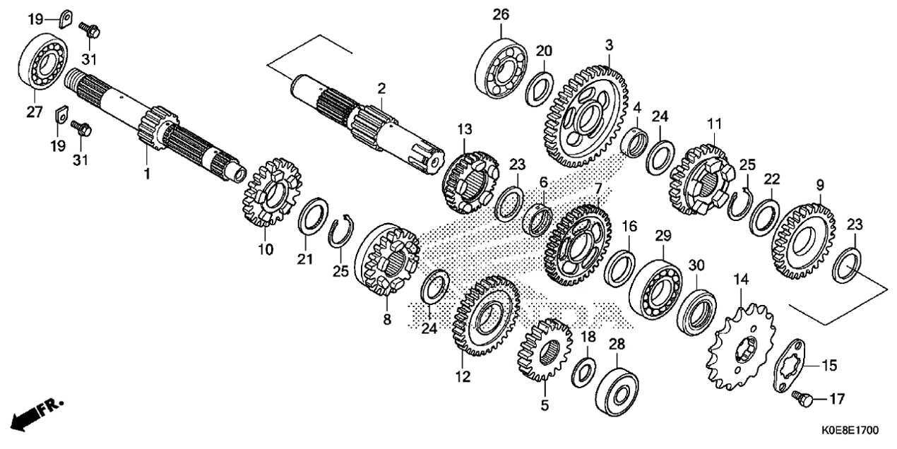 8. 23451-K43-900 ENGRANAJE DE TERCERA